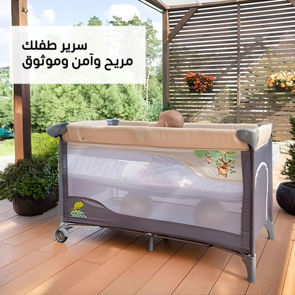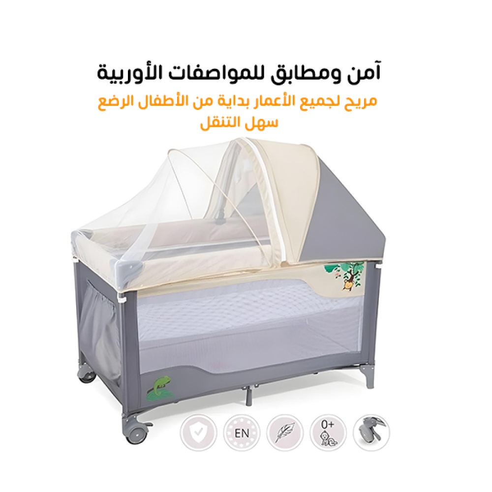 الميزات الأساسيةحواجز شبكية للحفاظ على الأجواء الداخلية أكثر تهوية والسماح بمراقبة الطفلبإمكانك اعتباره سرير أطفال أو مكان للعبعجلات امامية لسهولة تحر...